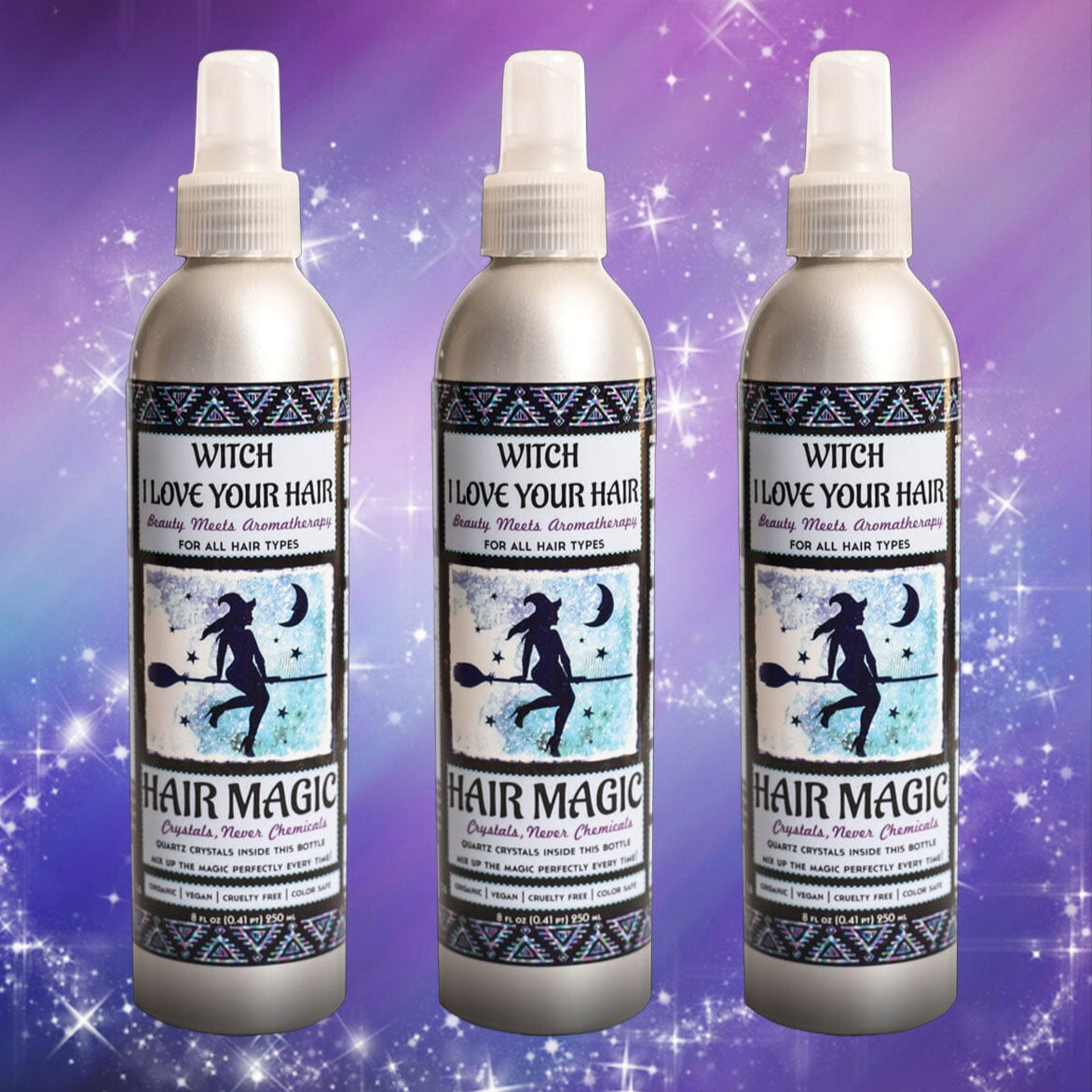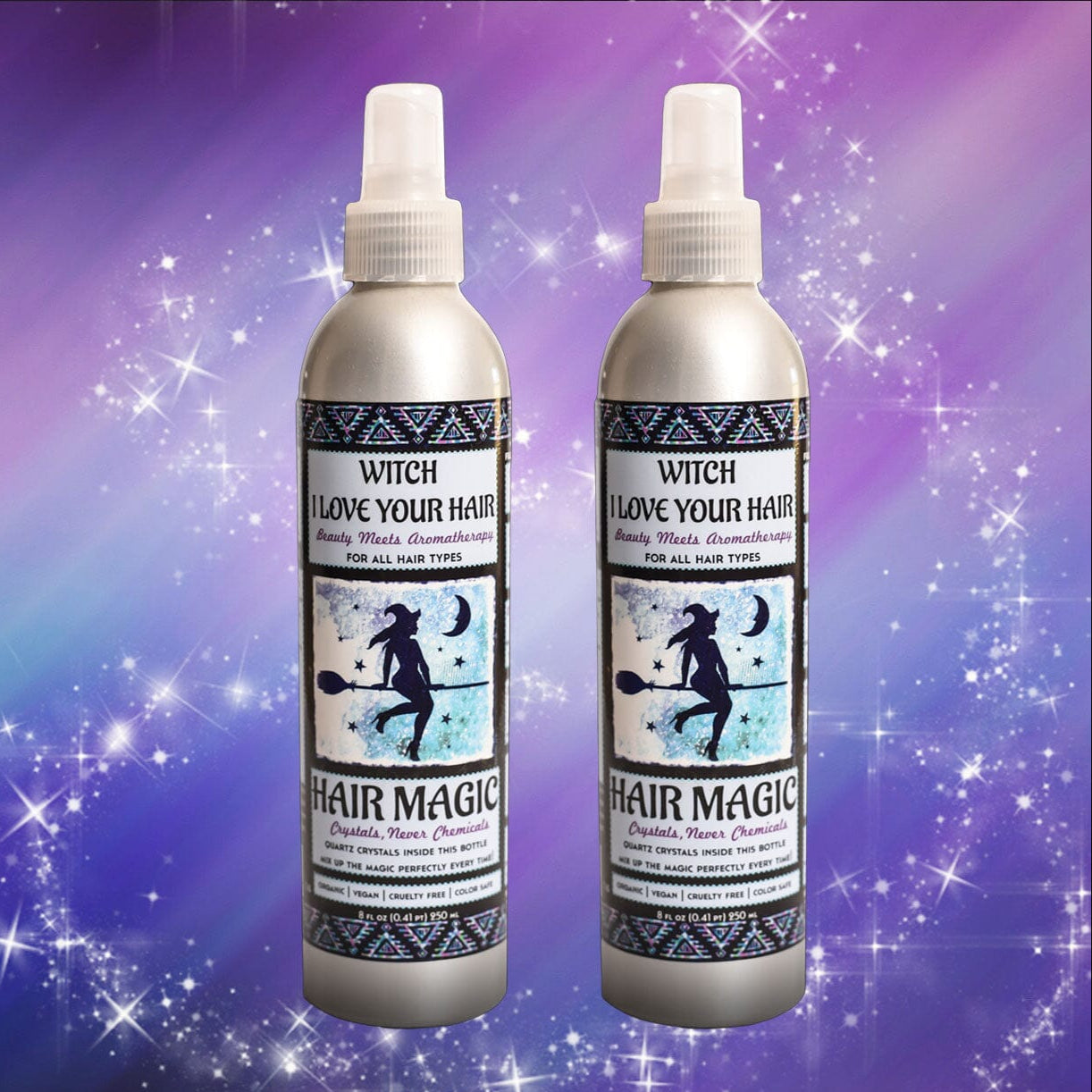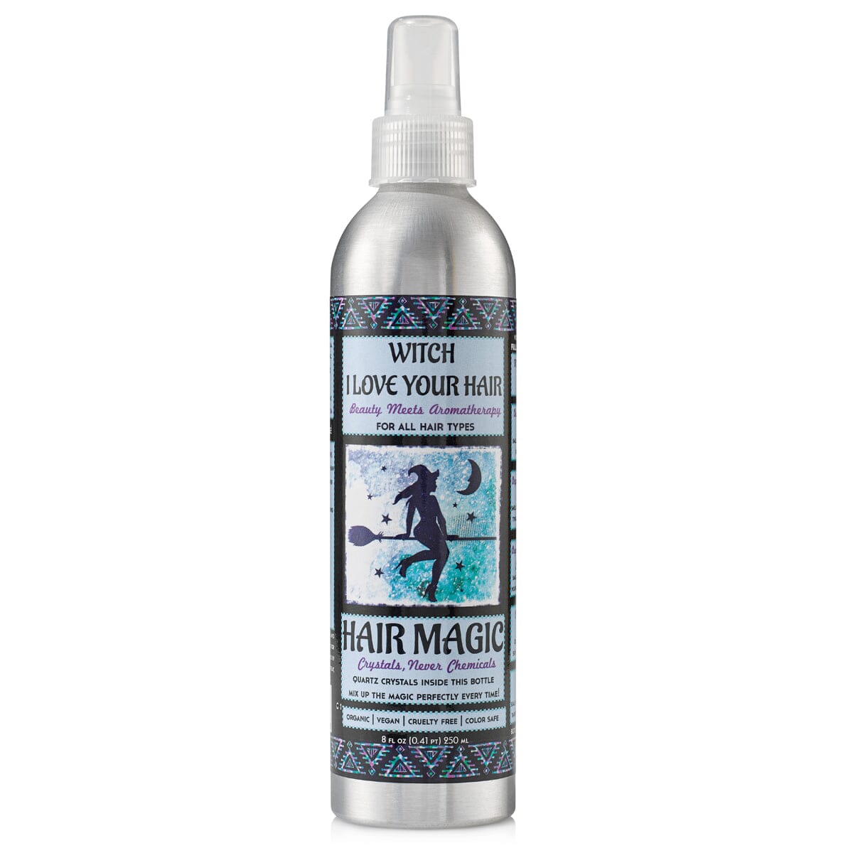 Magic Mist is a handmade hair elixir! Infused with real Quartz Crystal chips in the bottle to help mix this magic potion up. This allows us to remove any dilution chemicals from the recipe, and infuse it with crystals instead! Also, it's all Organic+Vegan+CrueltyFree+GlutenFree! It's the good good stuff.